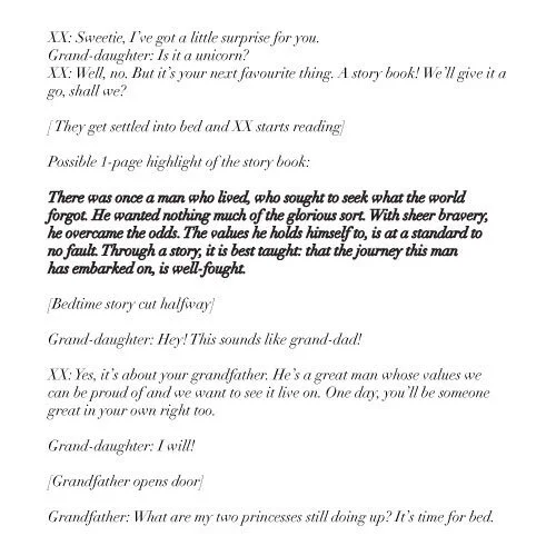 How do we encapsulate the legacy of Kenny Dalglish and pass down the virtues of a man well deserving of our respect? Kenny’s wealth of expertise and his wide scope of influence have reached the hearts of many. One that’s undeniable - his family. There are some traditions you inherit, and others you start. With passion, it’s a mission a man chooses to embark on. And he has stepped up to this call, on pitch and off pitch - translated to his personal life. Hence, my idea was to exemplify all these timeless truths into a kids’ storybook featuring his daughter and granddaughter - “Legacies for the Little”.