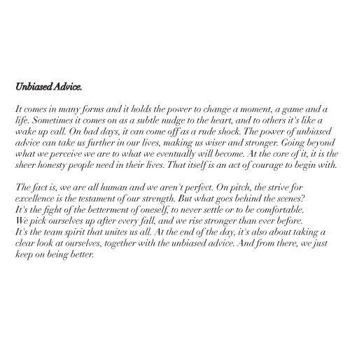 I’ve had the privilege of working with an amazing bunch of people on The Power of Numbers campaign for Standard Chartered x Liverpool FC and I can’t be more thankful for working on this project. My job as a Copywriter was to distill the insights of men who enjoy watching football/ardent Liverpool FC club supporters as they are the audience we want to reach out to. Alas, piecing all these gems of insight and pockets of profound, timeless wisdom into an extraordinary campaign piece, touching the hearts of men.